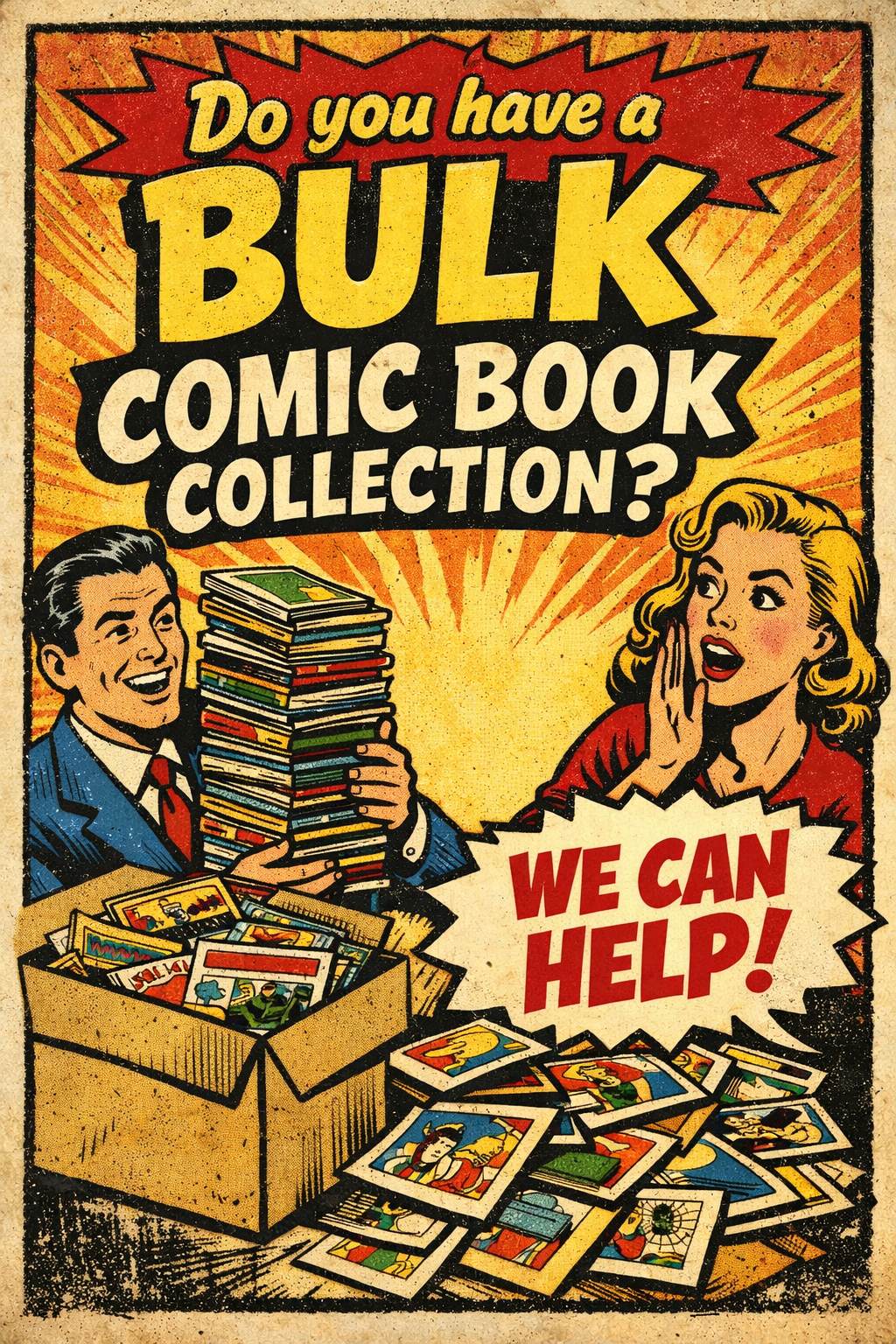 We’re passionate about comics and serious about making fair, honest deals. Whether you’re sitting on a few vintage issues or an entire basement collection from the 50s to the 80s, we’re ready to make a real offer. Our team handles every step with care, transparency, and a deep love for the books you grew up with.